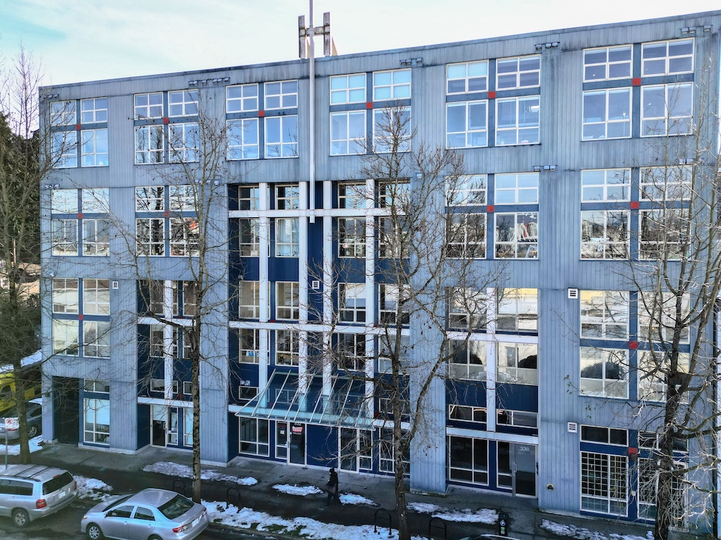 Corbel Commercial is pleased to announce the sale of this distinctive flex industrial office approximately 1,121 SF at 338 West 8th Avenue. Built-in 1998, this versatile building features a dynamic mix of industrial, residential, and commercial office units, architecturally designed for mixed-use live & work combining office areas with warehouse, storage, or light manufacturing capabilities. The commercial strata unit has been extensively renovated, currently outfitted for a showroom and production studio with a reception area, a mix of private and open work spaces, and a dedicated production room with 14-foot ceiling heights and large floor-to-ceiling windows.