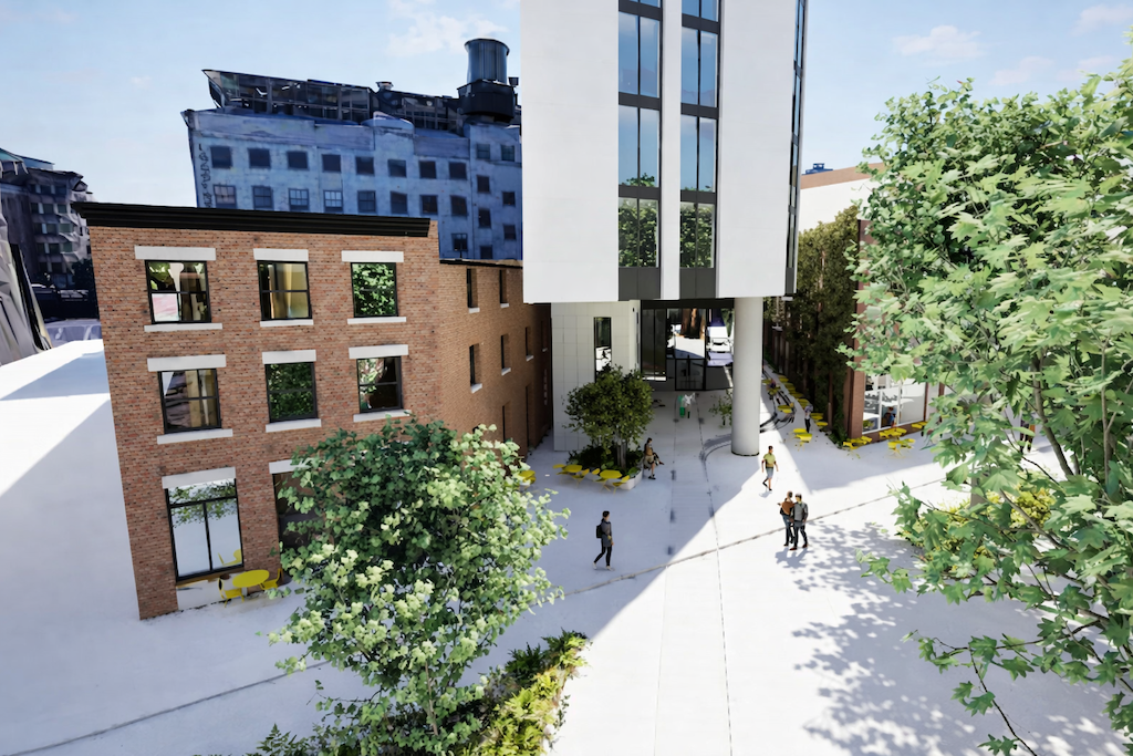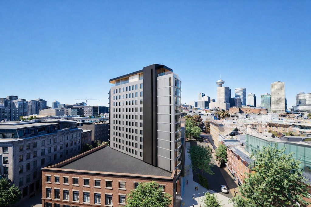 The proposed development has been thoughtfully designed to integrate with Gastown’s historic context, referencing the site’s former CPR railway alignment and off-grid orientation while introducing contemporary architecture that complements the surrounding heritage streetscape. A setback, double-height ground floor creates a highly permeable pedestrian realm, strengthening connections between Powell Street, the laneway, and adjacent public spaces.